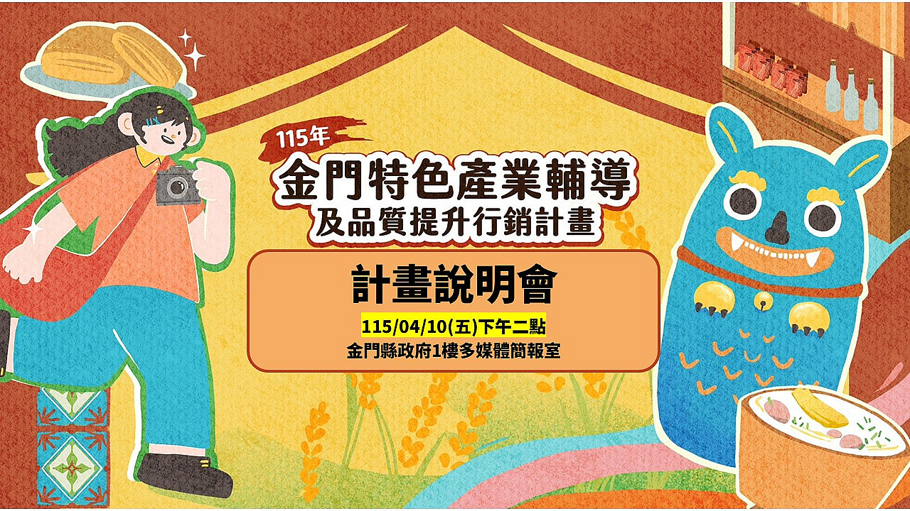 【計畫說明會】115年金門特色產業輔導及品質提升行銷計畫」計畫說明會,歡迎報名參加!